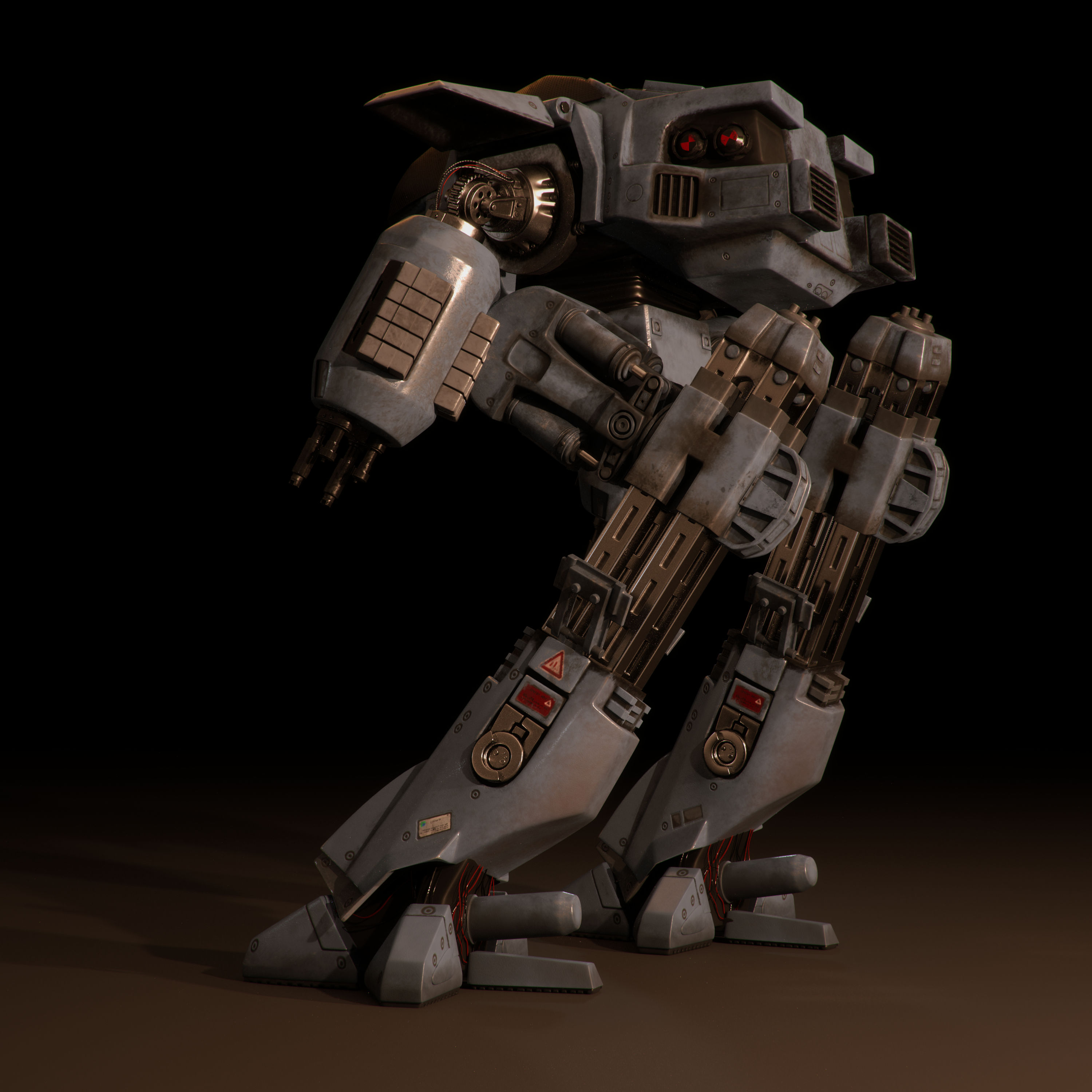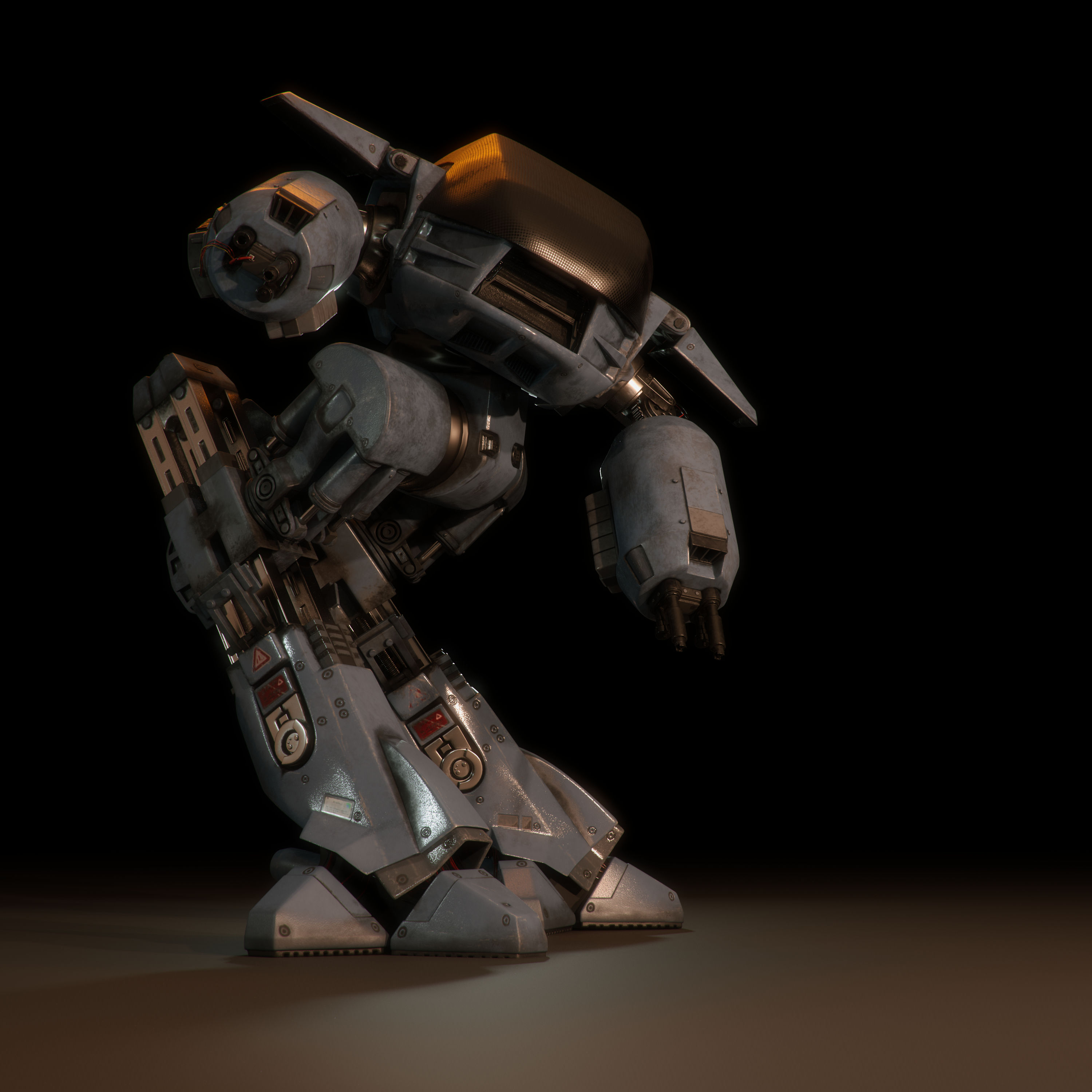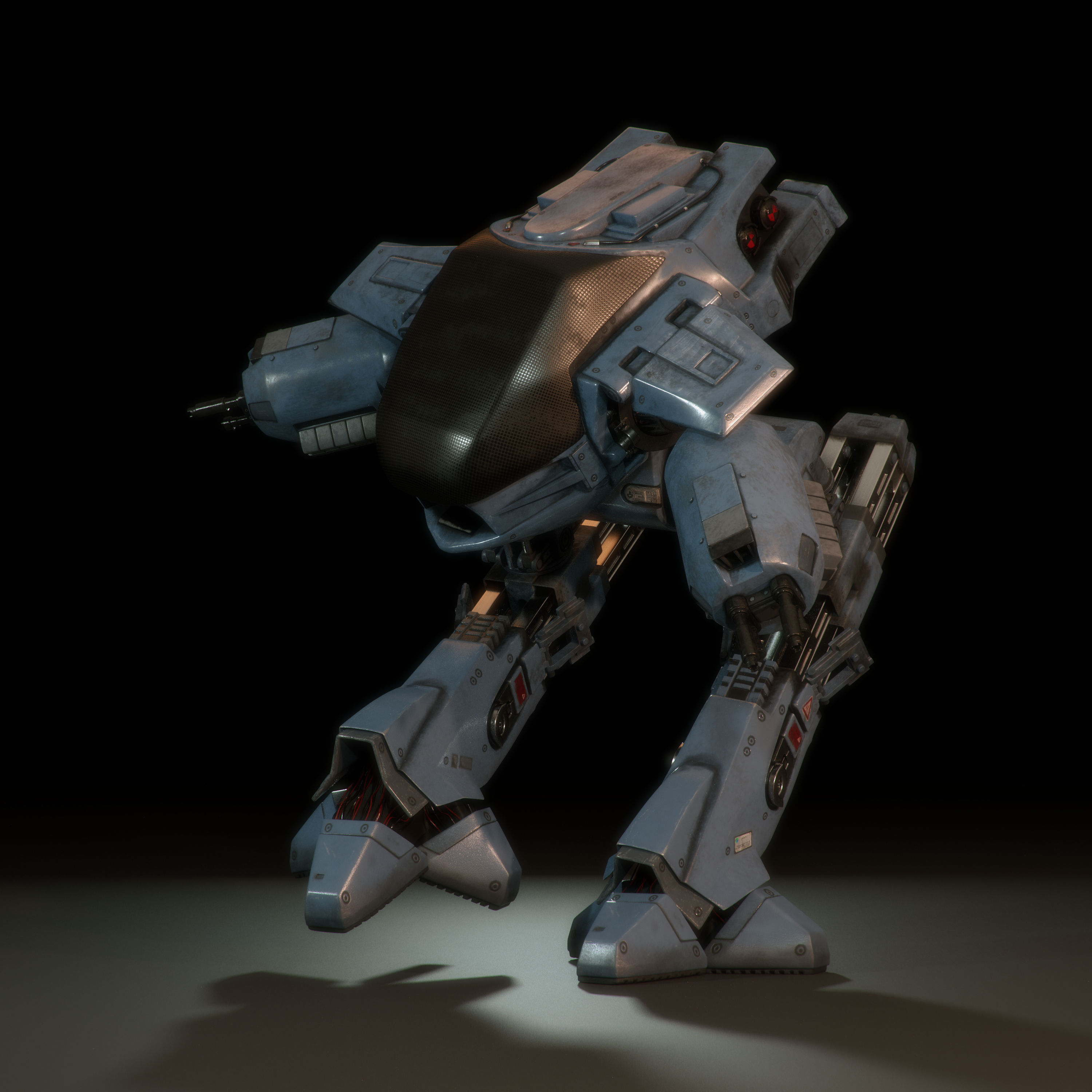 This is the famous guy from RoboCop. He was one of the first things I modeled years ago when I needed something to practice on. When modeling was done I just moved on the next thing, not making any textures for him. Later on after I learned texturing, I have been working on ED on and off. It has been a long time with many long breaks but finally the guy is done. Ah, those sweet gorgeous legs of his