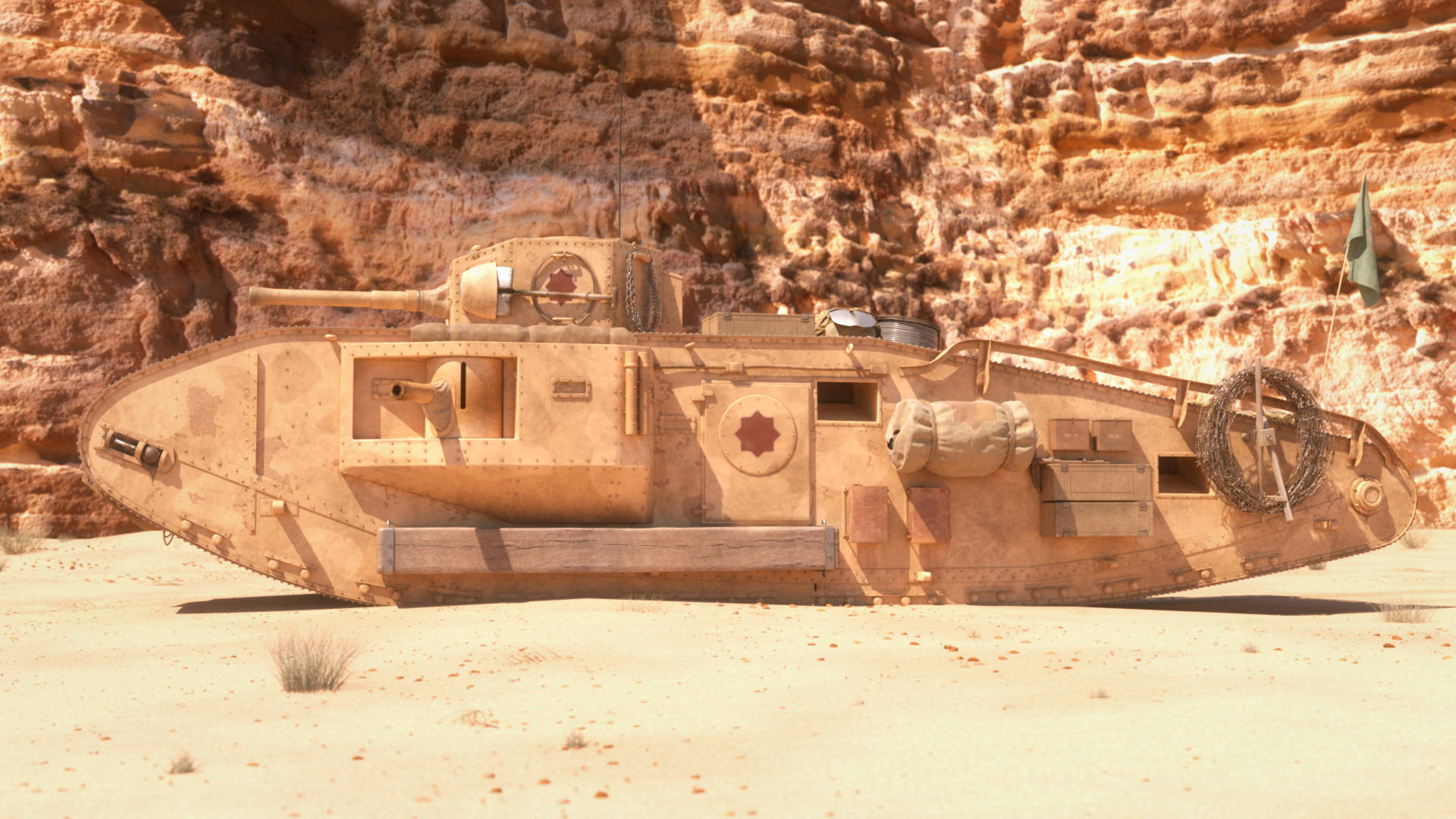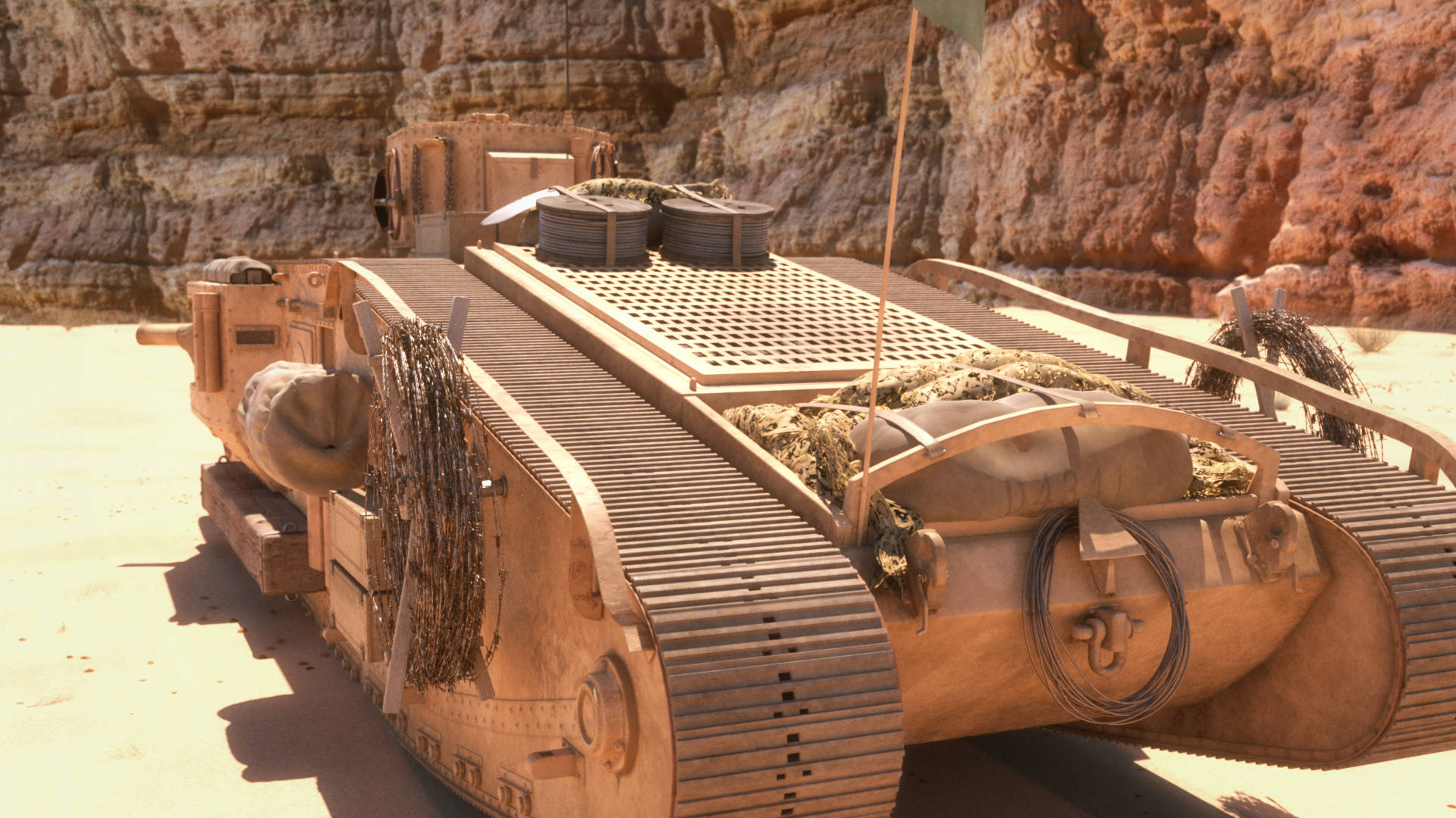 As cool as the 1940’s design is by itself, I wanted a little comical look to it. The boat hull is way shorter than the original and I wanted some exaggerated tank tracks for no reason at all. Those changes made the scale of things look wrong. Everything is modeled to scale, it’s actually the vehicle that is smaller than it looks.